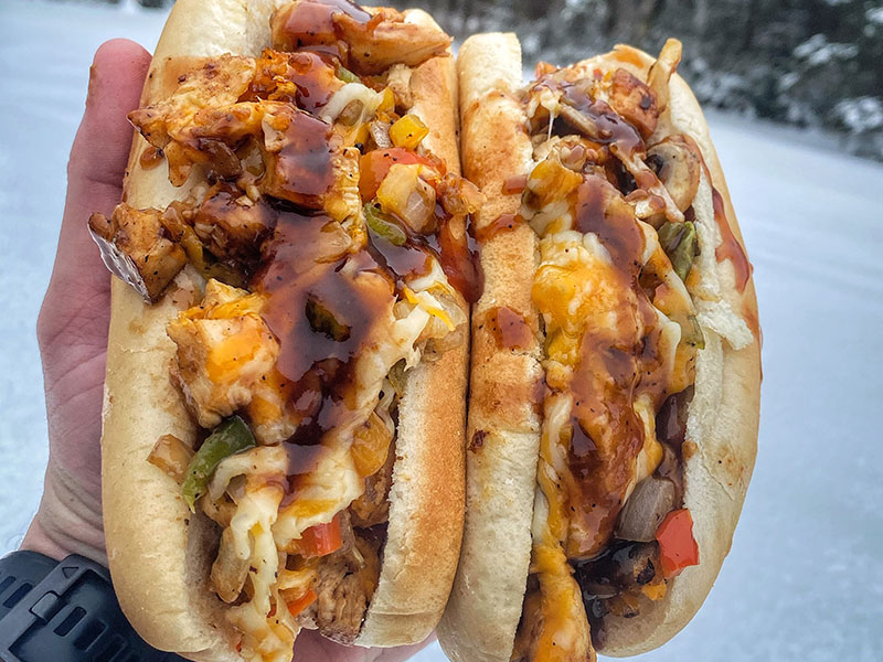 • As soon as the cheese is melted, scoop up, and lay each pile on your buns. Finish with a generous amount of Cuisinart Imperial IPA BBQ sauce.