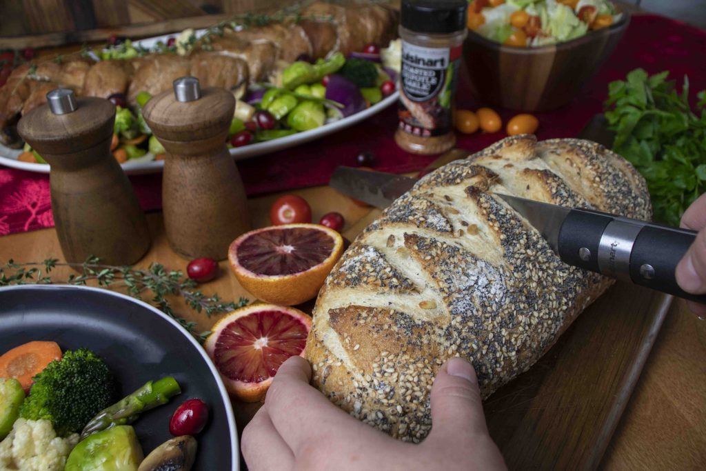 - Slice the pork loin in 3 even strips starting from about 2 cm from the top