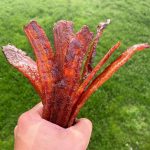 Place you bacon on indirect and grill until browned and very crisp. Make sure all the sugar is caramelized, it will take 20 to 30 minutes, depending on the thickness of the bacon.