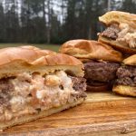 Once the griddle is really hot, cook the beef donuts on one side for about 7 minutes.
